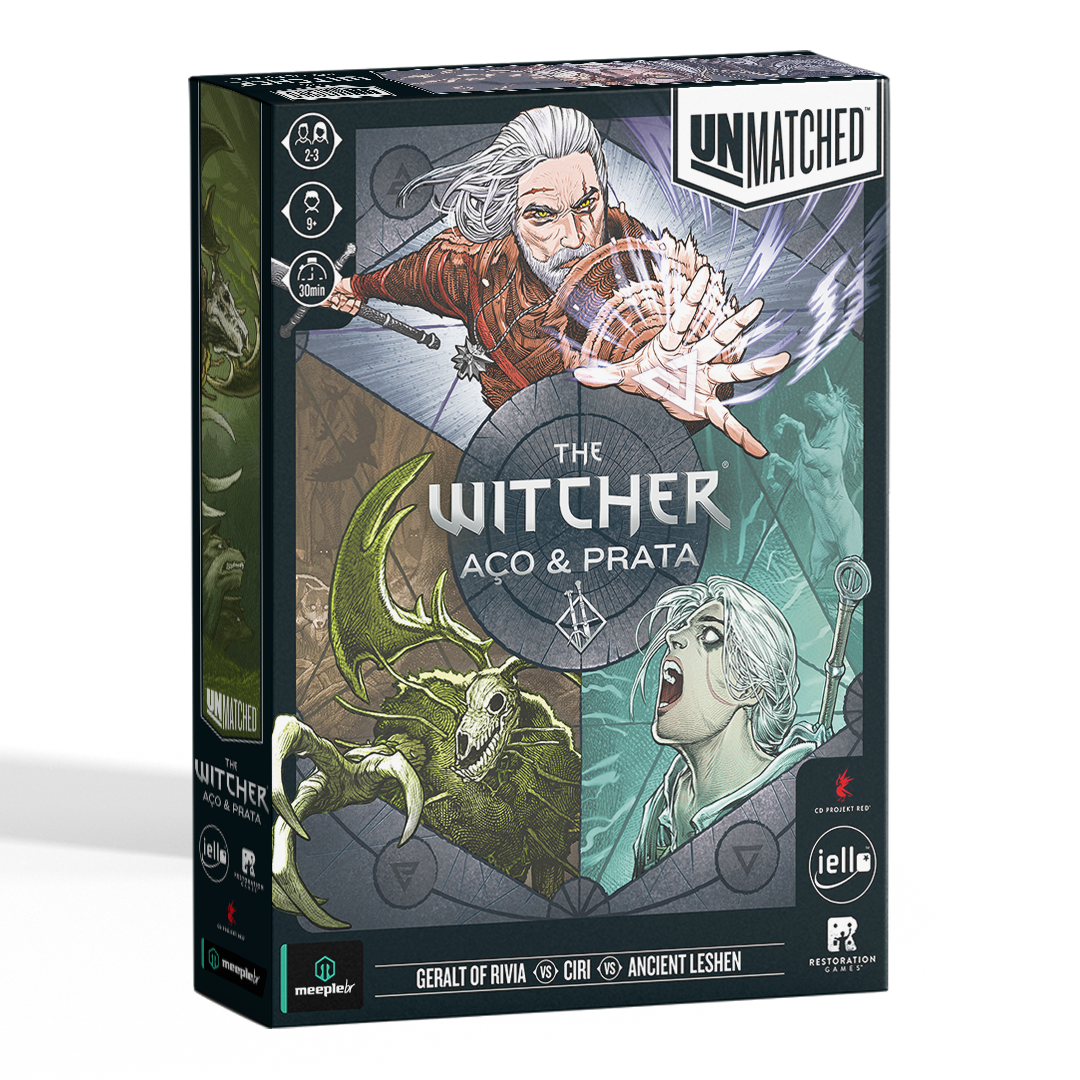 Unmatched: The Witcher – Aço e Prata traz o lendário Geralt de Rivia para o campo de batalha, junto de Ciri e o Liche Ancião. Neste jogo de combate tático, os jogadores se enfrentarão em duelos rápidos onde o posicionamento no tabuleiro e o uso inteligente de habilidades únicas são a chave para a sobrevivência.